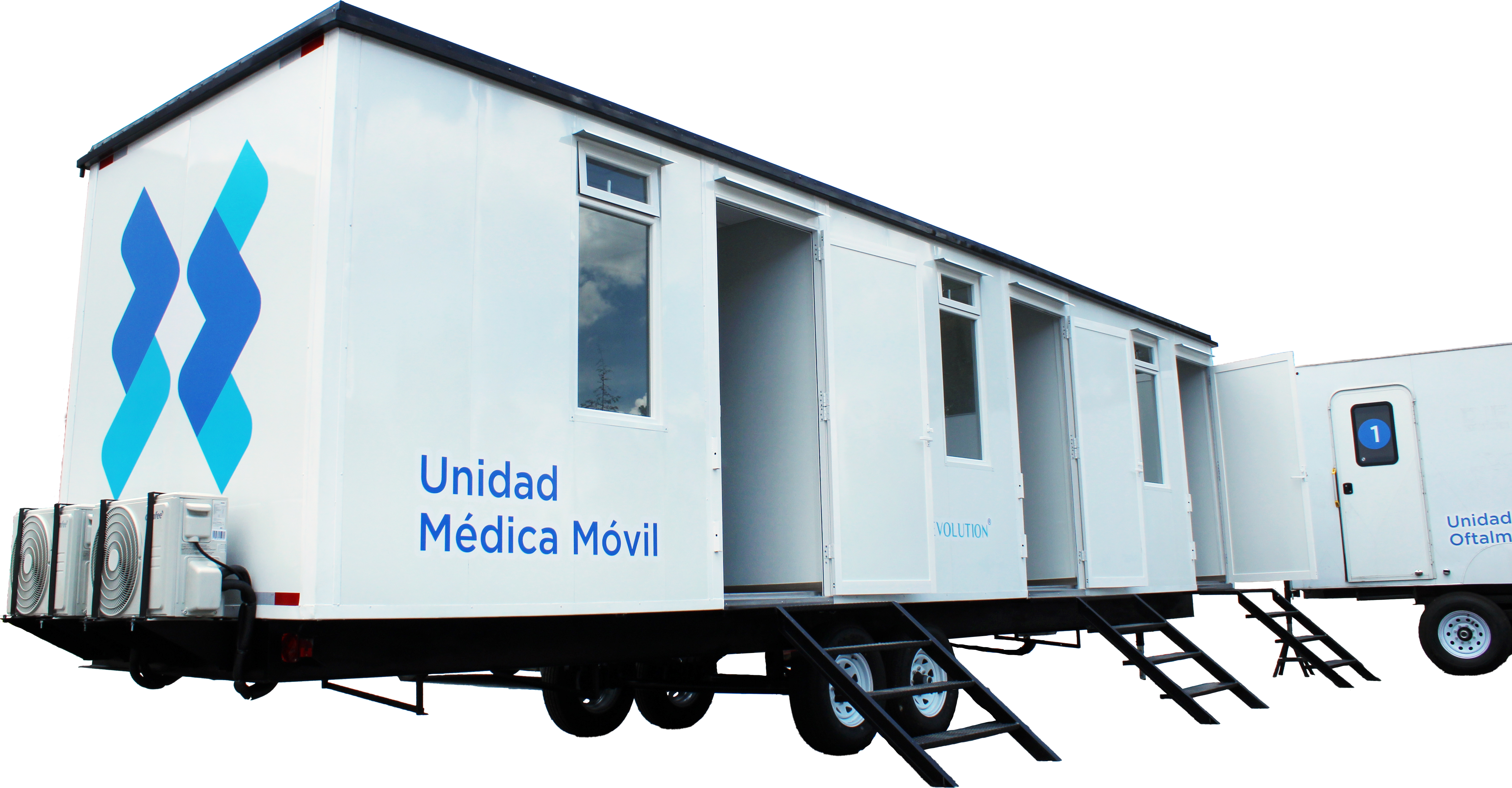 Trailers clínicos climatizados, listos para operar. Se entregan bajo especificación según tu cartera de servicios: consulta, diagnóstico, oftalmología, laboratorio, odontología, imagenología, vacunación, farmacia, triage, quirófano menor, entre otros.